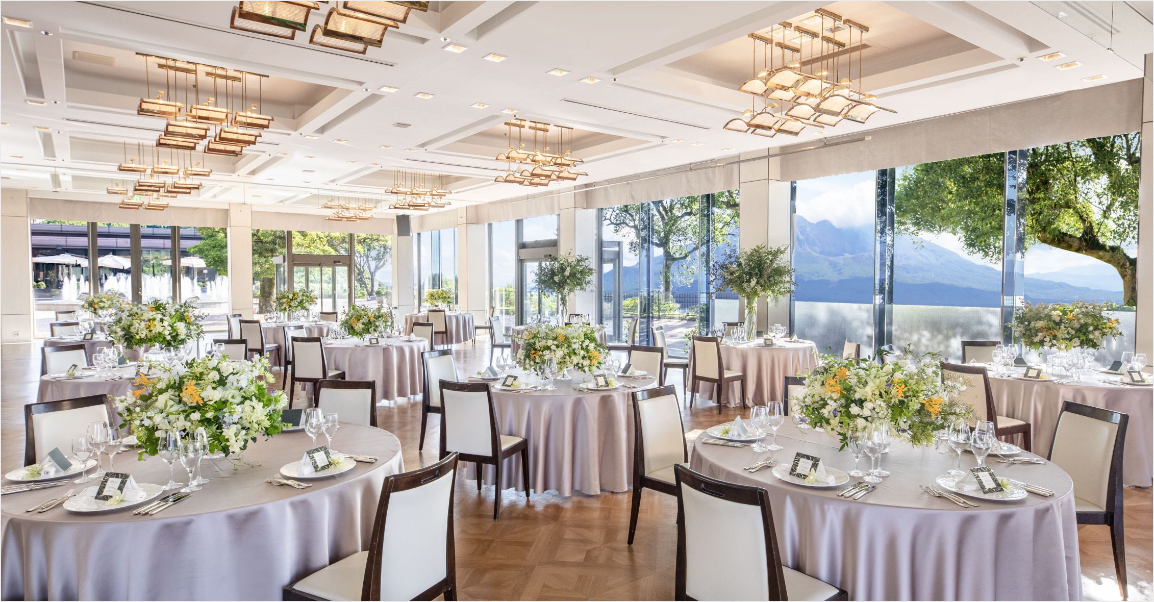 煌びやかなシャンデリア、自然光が降り注ぐ大きな窓、開放的な眺望が魅力など、