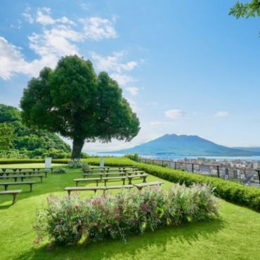 自然光が降り注ぐチャペル、歴史と格式ある神殿、桜島と錦江湾を望むガーデン、