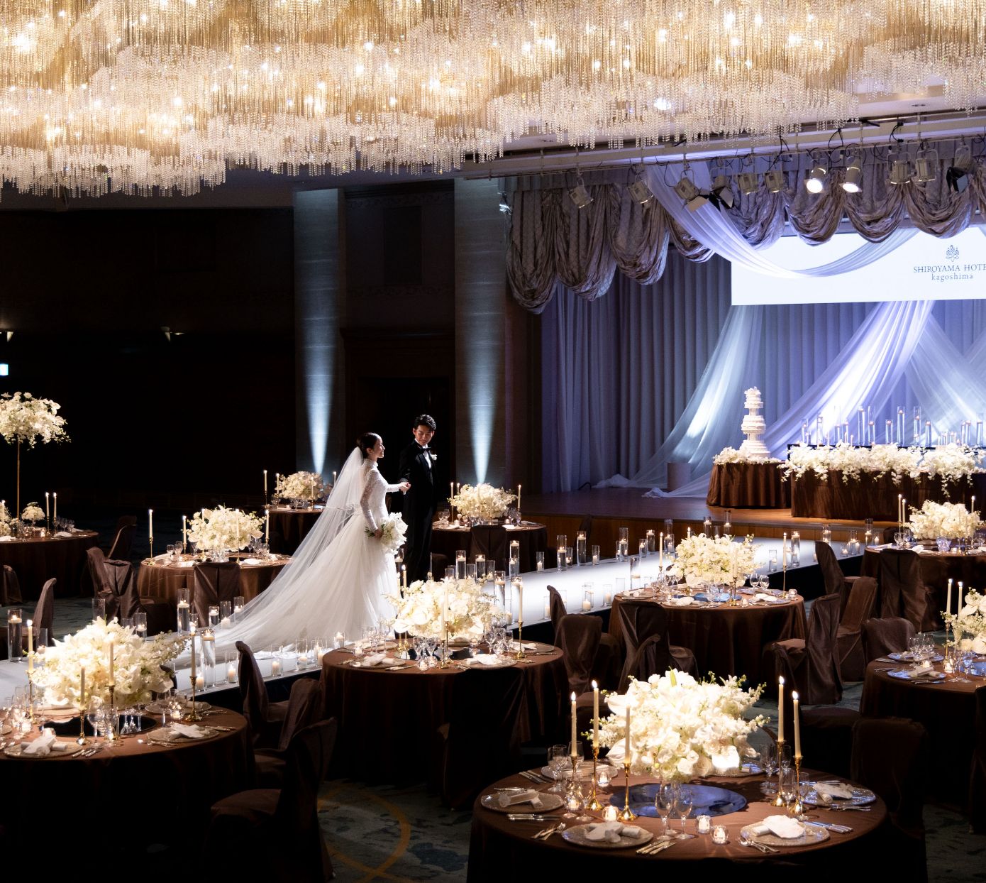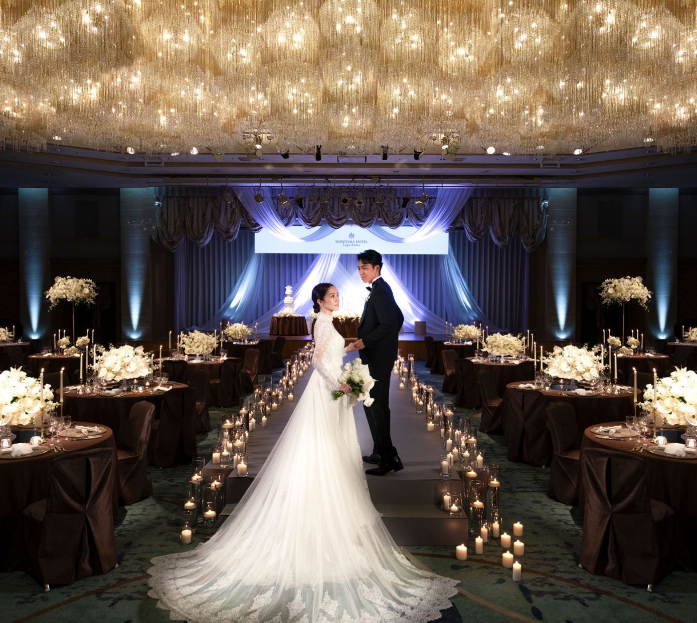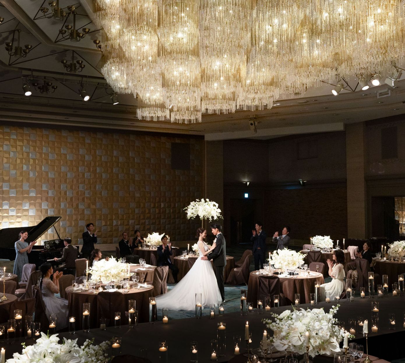 煌めくエメラルドカットのシャンデリアに包まれた大空間。