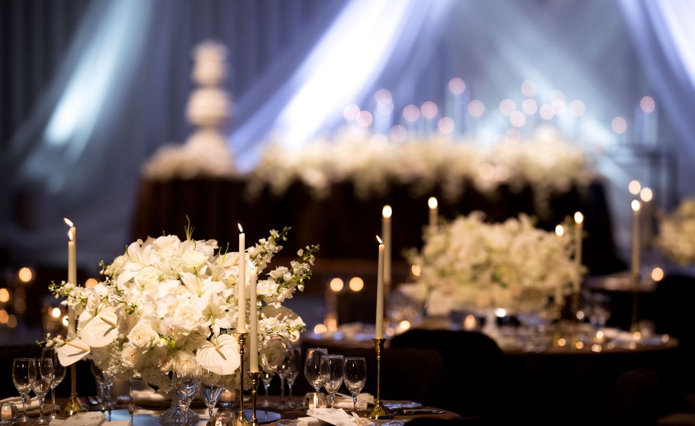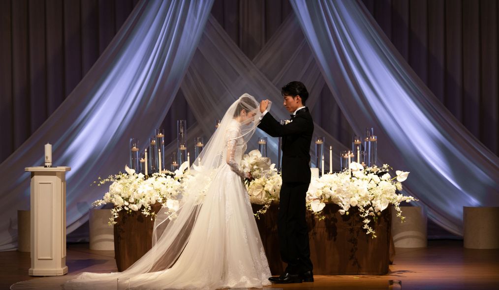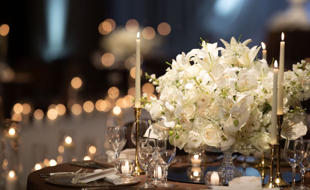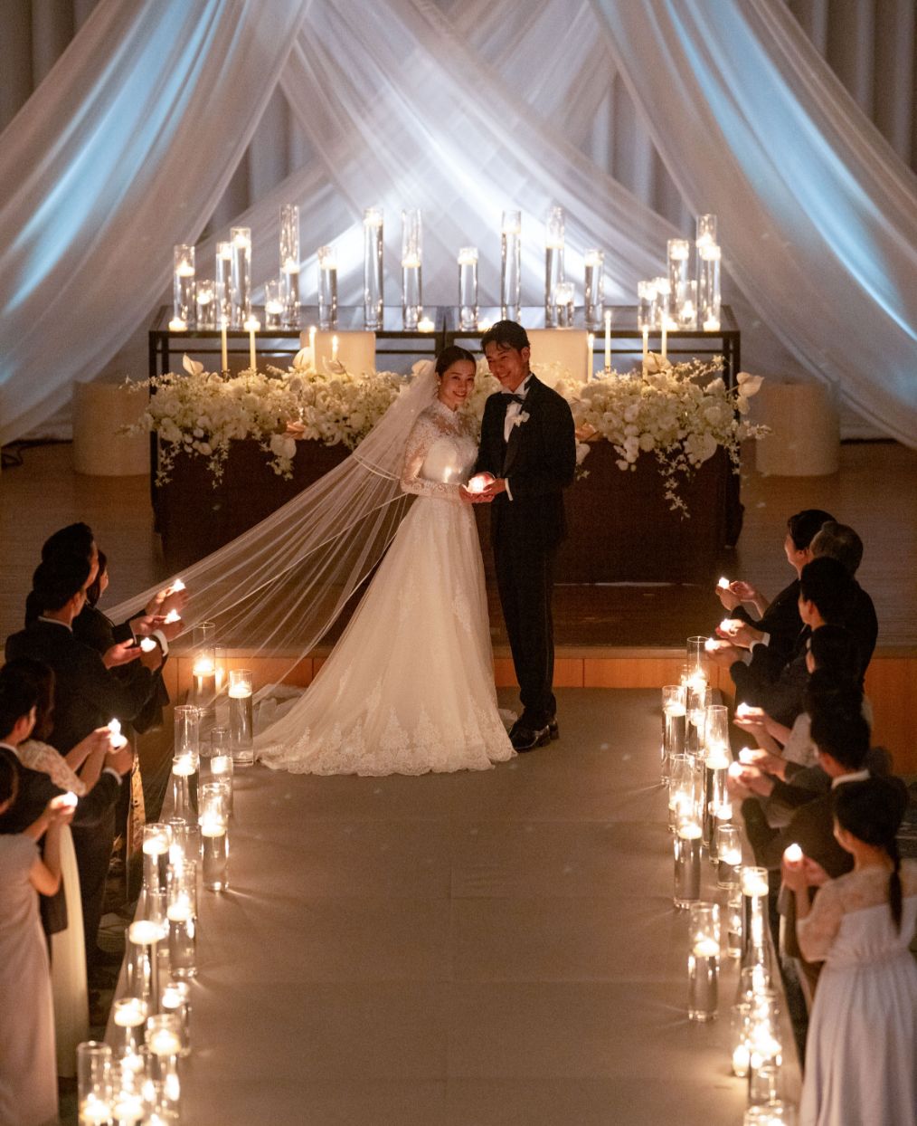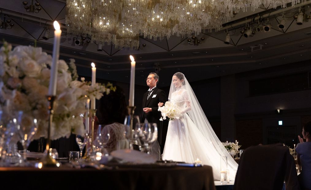 煌めくエメラルドカットのシャンデリアに包まれた大空間。