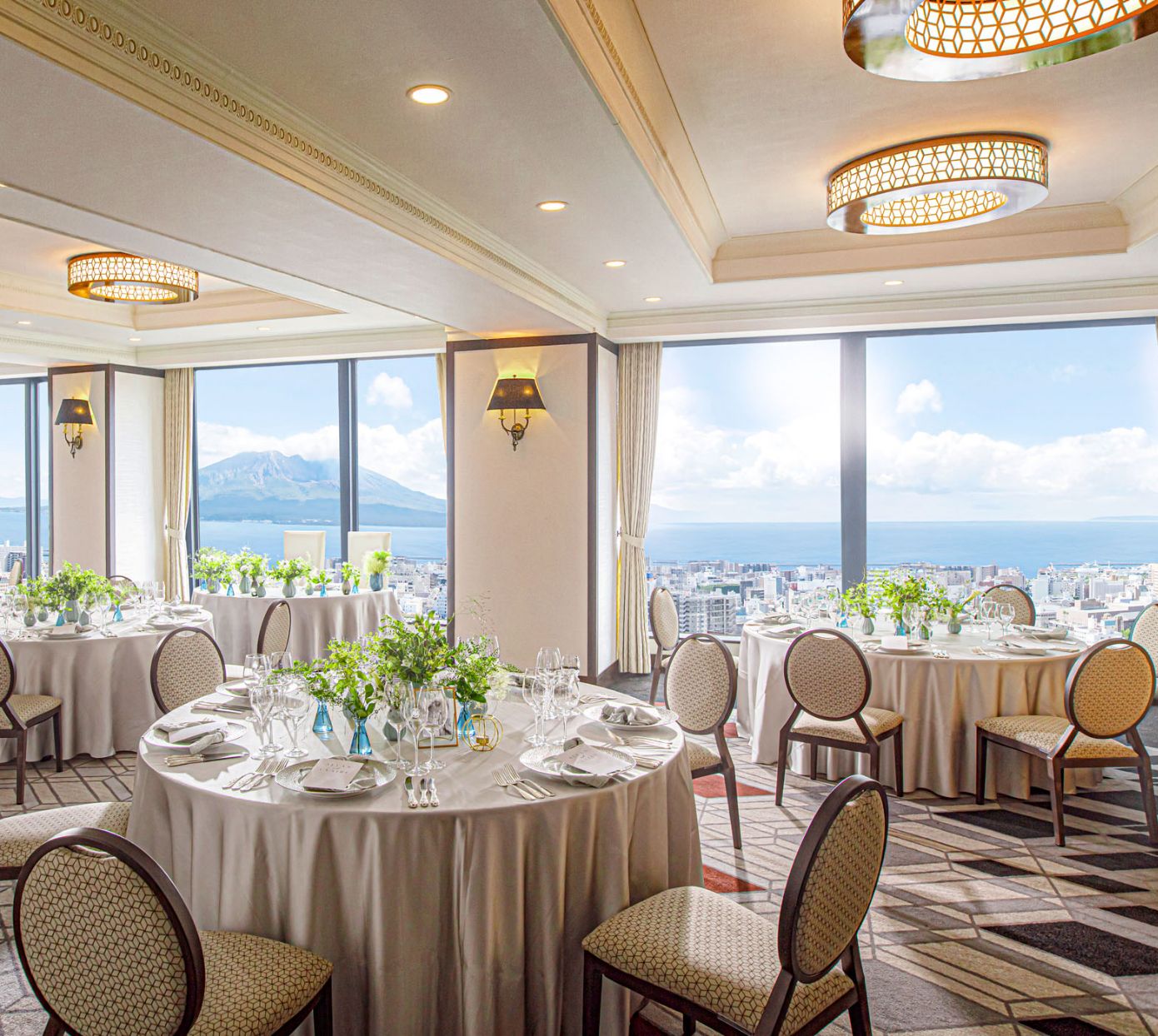 窓の外に広がる桜島と錦江湾の絶景が、